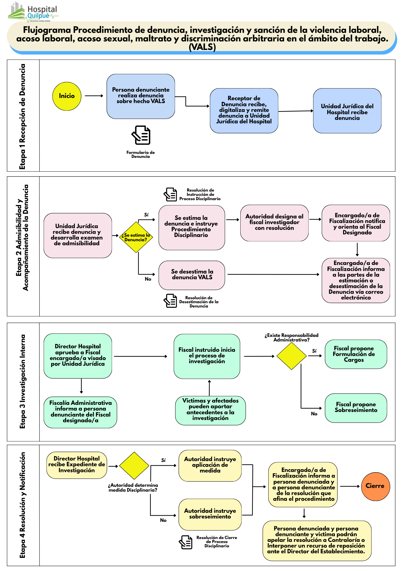 Descargue acá Procedimiento de denuncia, investigación y sanción de la violencia laboral, acoso laboral, acoso sexual, maltrato y discriminación arbitraria en el ámbito del trabajo. (Procedimiento VALS SSVQ 2024).