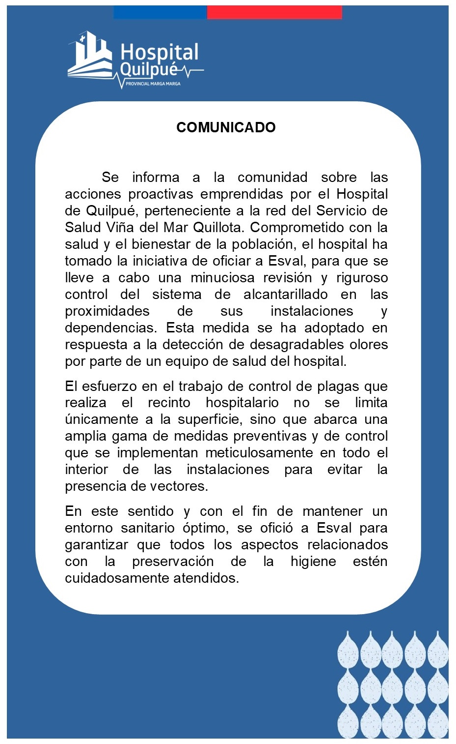 Comunicado: Hospital de Quilpué Oficia a Esval para revisión y mantenimiento de red de alcantarillado en torno al recinto