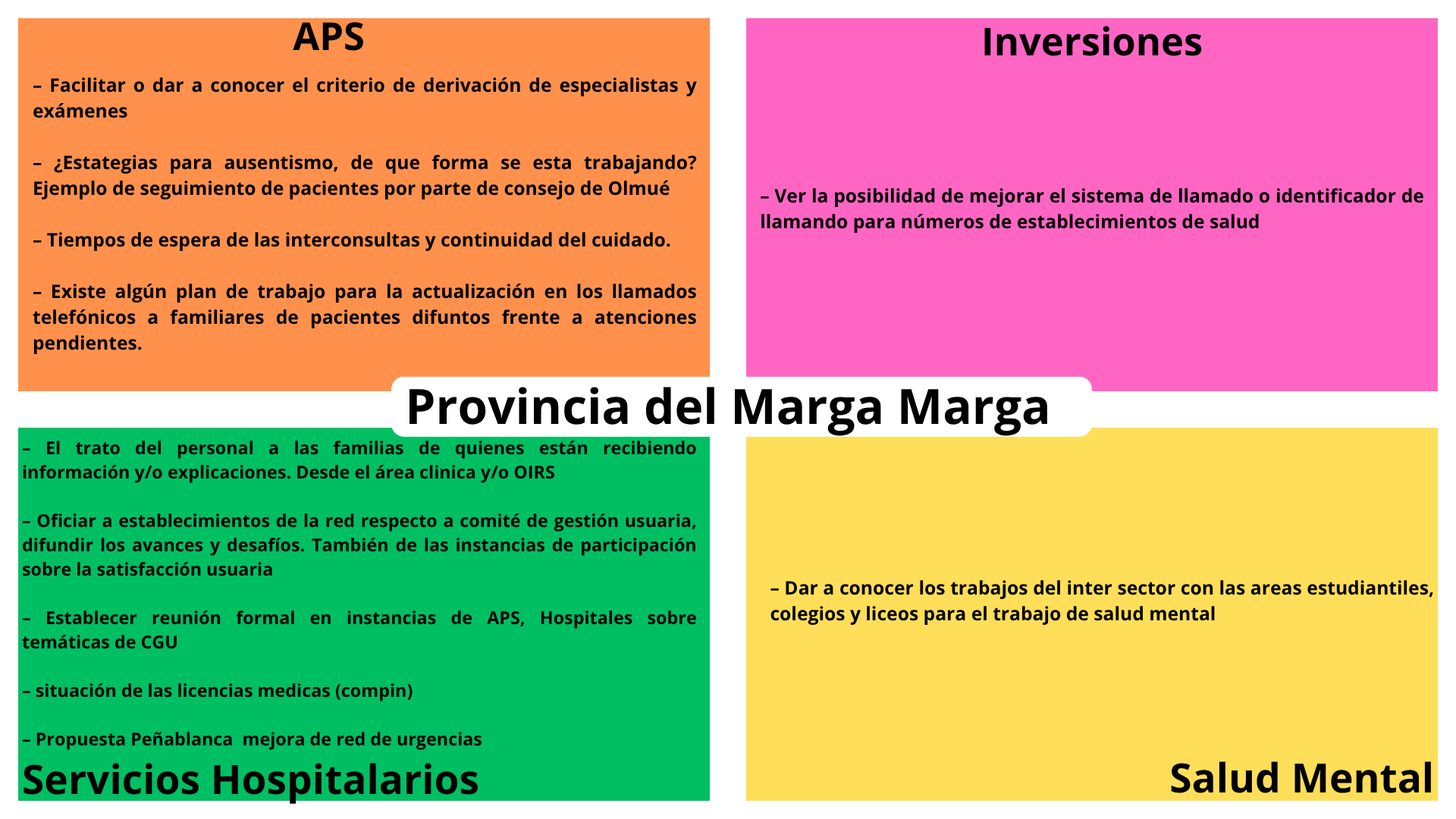 - Imágenes y cuadro resumen de las temáticas levantadas por la comunidad.:
