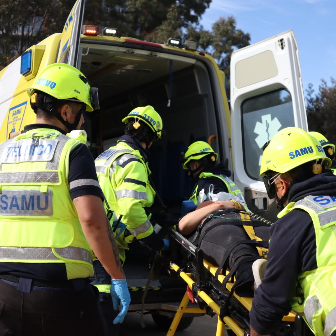 Departamento de Emergencias y Desastres SSVQP y Universidad Santo Tomás realizan simulacro de accidente vehicular para sensibilizar a la población previo a fiestas patrias