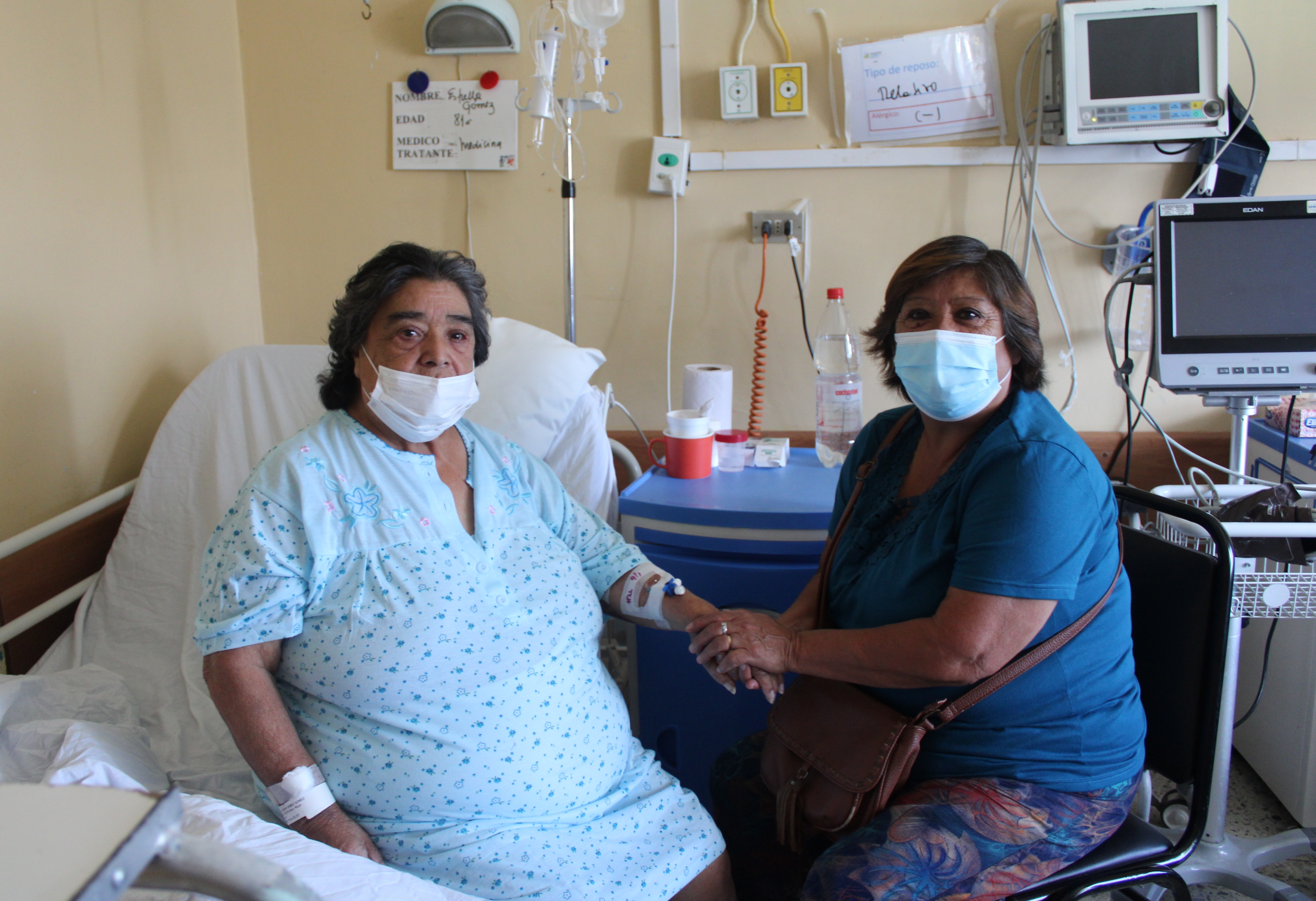 En relación al número de familiares que pueden visitar al paciente, se permitirá el ingreso de 2 personas diariamente, las cuales deben alternar su presencia en la sala de hospitalización, en el horario estipulado. A su vez los horarios son diferenciados dependiendo de si la cama es par o impar, de tal manera de mantener el distanciamiento físico al interior de cada sala.