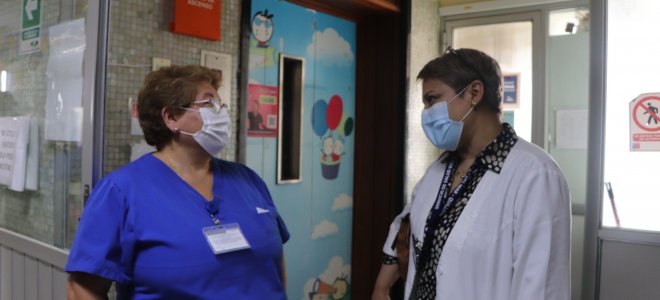 En el marco de la campaña de vacunación de refuerzo con dosis bivalente contra el SARS COV 2, el Hospital de Quilpué ha continuado inoculando a todo el personal de salud, uno de los grupos objetivo establecidos para esta nueva convocatoria, junto también a la comunidad usuaria. Para conocer en terreno el proceso de vacunación y las motivaciones de los funcionarios y funcionarias, la Subdirectora Médica del Servicio de Salud Viña del Mar Quillota, Dra. Dafne Secul, junto al Dr. Pedro Duran, visitaron el Servicio de Pediatría, donde el equipo de vacunación realizó la inoculación in situ, como parte de la estrategia de asistir a cada uno de los servicios clínicos y unidades administrativas, para incentivar que el personal concrete la 5a dosis de refuerzo.