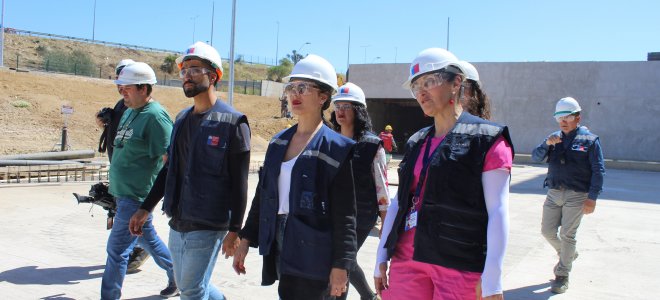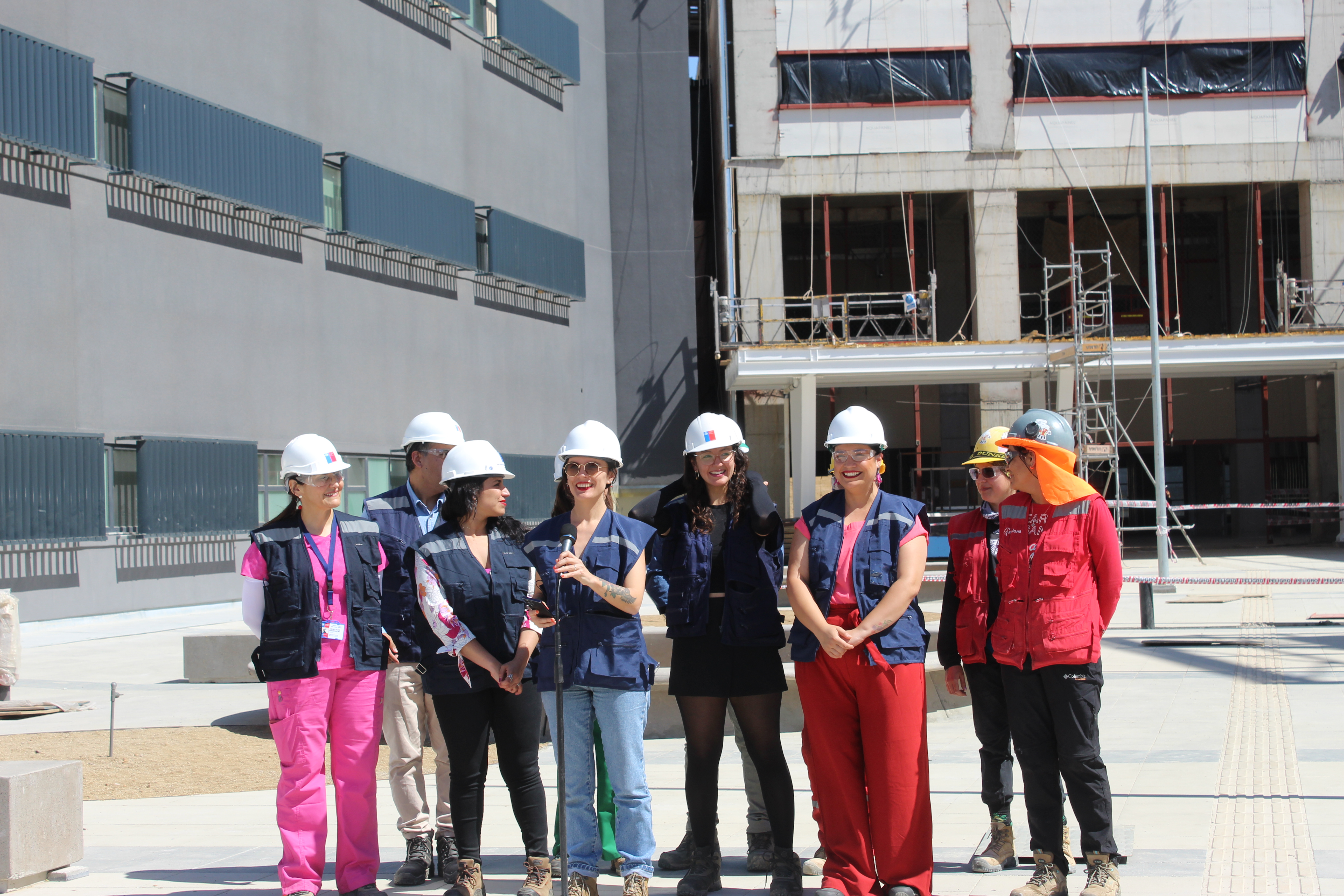 En su recorrido, la Ministra Camila Vallejo, se dio el tiempo para conversar con algunas de las mujeres que trabajan en la obra, principalmente en la construcción del Jardín Infantil y la Sala Cuna hospitalaria, quienes les contaron sus experiencias tras capacitarse para realizar labores de construcción.