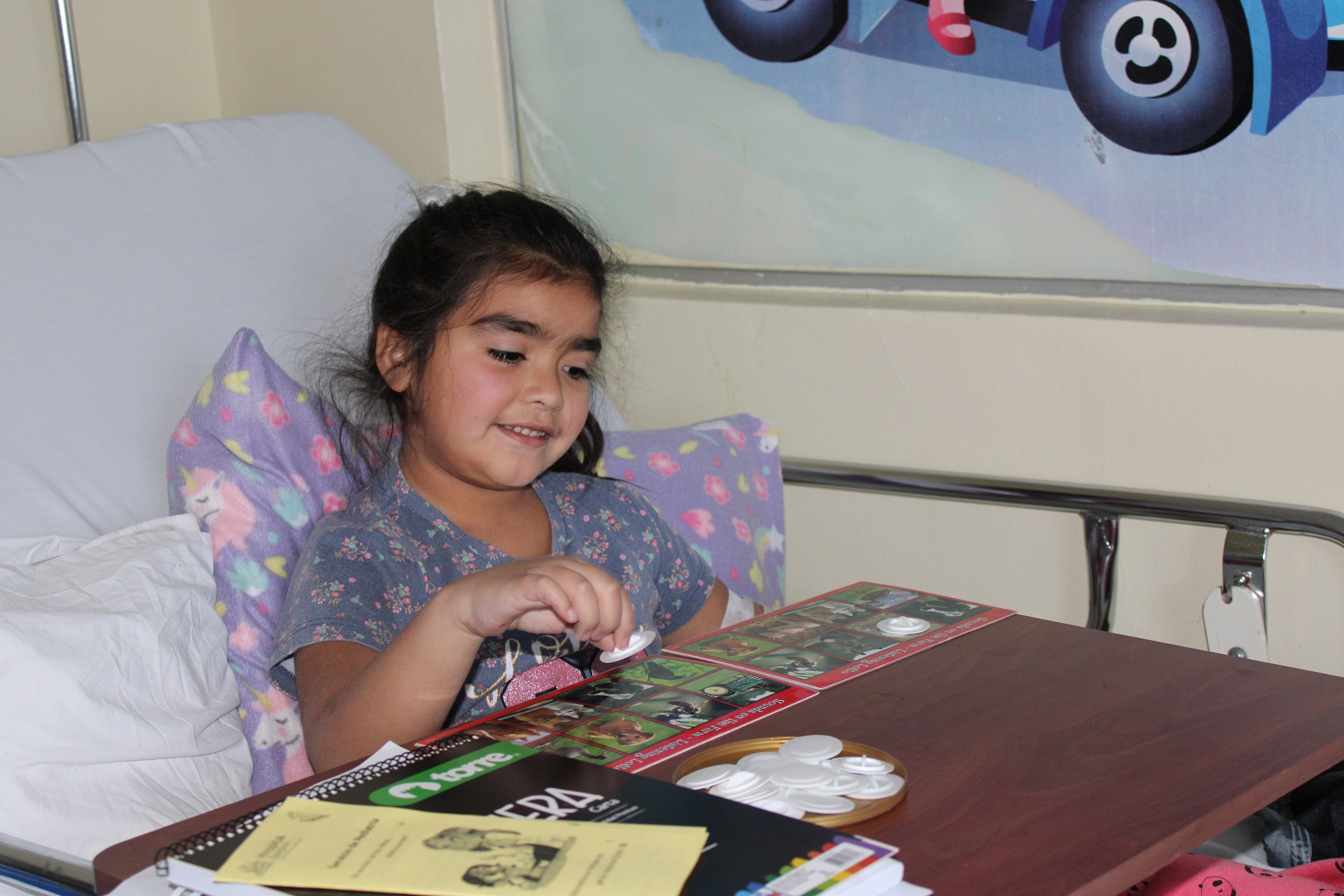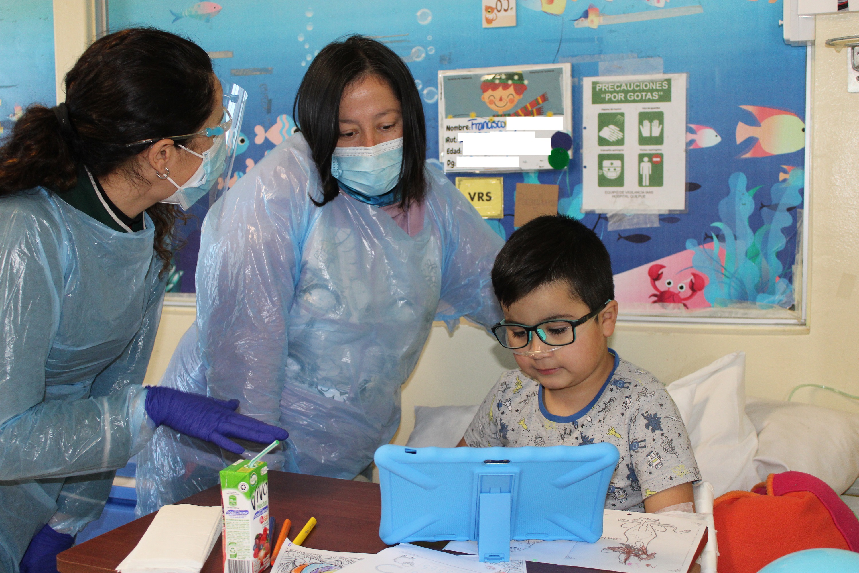 Aprendiendo a leer con el perro Bartolo –un entretenido software educativo-, jugando al bingo de animales, pintando y dibujando o adornando sus espacios con distintas manualidades, los niños y niñas hospitalizados del Servicio de Pediatría del Hospital de Quilpué se entretienen durante su estadía hospitalaria e intentan normalizar y vivir su proceso de hospitalización de manera más positiva.