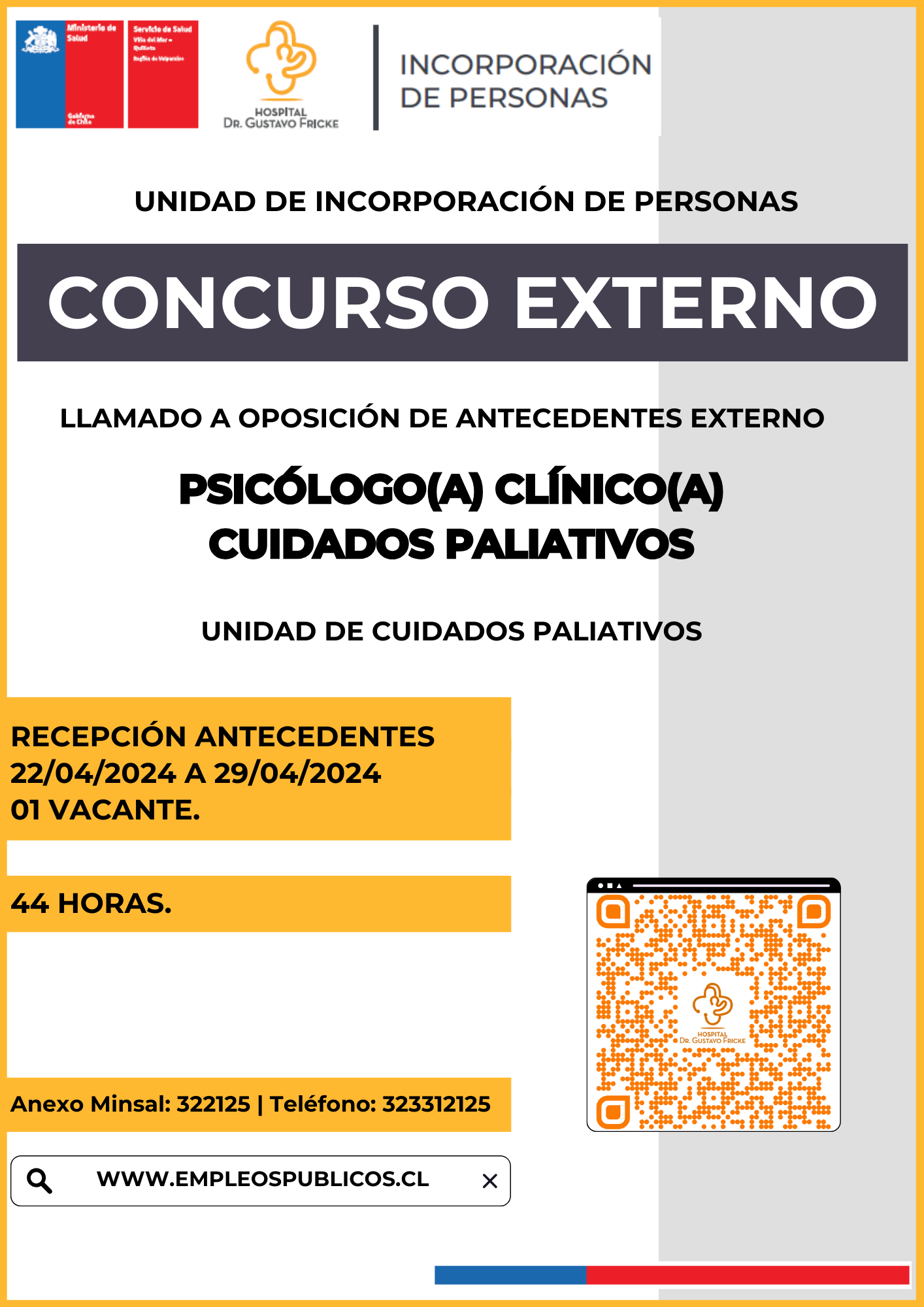 siguiente Llamado a Oposición de Antecedentes Externo SSVQ Psicólogo(a) Clínico(a) Cuidados Paliativos