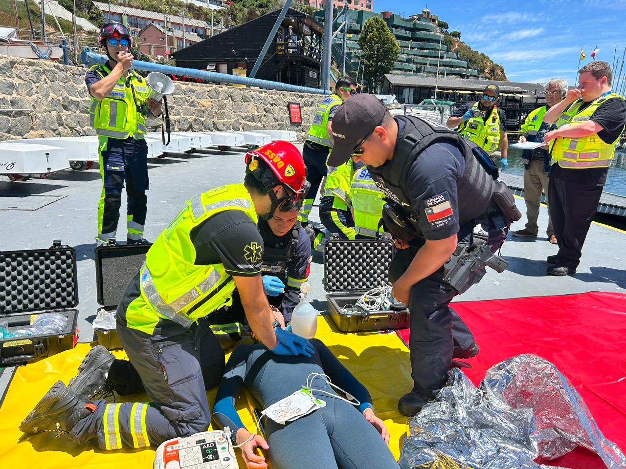 Con el objetivo de reforzar la prevención y mejorar la coordinación interinstitucional ante emergencias marítimas, el Departamento de Emergencias y Desastres del Servicio de Salud Viña del Mar–Quillota–Petorca (SSVQP), en conjunto con la Capitanía de Puerto de la Armada, SAMU SSVQP; SAMU Litoral el Departamento de Salud Municipal de Concón y el Bote Salvavidas, realizaron durante la jornada un simulacro de rescate por inmersión marítima en el borde costero de Concón, específicamente en el Club de Yates de la comuna.