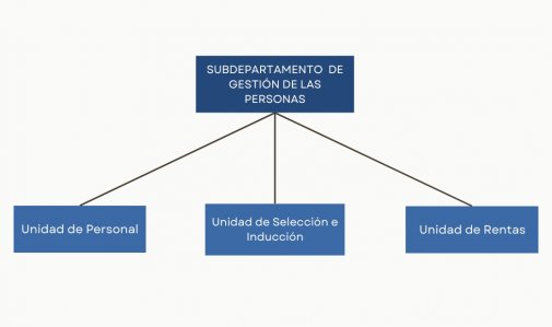 Liderado por el Sr. Adolfo Martínez, el Subdepartamento de Gestión de Personas planifica, organiza, dirige y controla las funciones de los subsistemas de gestión de personas, tales como administración y mantención del ciclo de vida funcionaria, selección, ingreso a la planta, vinculación contractual, compensaciones remuneracionales, desarrollo de carrera funcionaria tales como promociones y ascensos, registro y control de dotación y desvinculación de personas, en el marco normativo vigente.